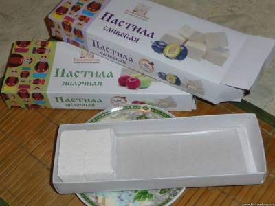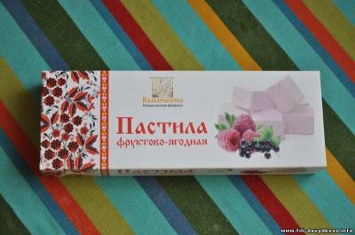 | а я нашла очень вкусную пастилу. мы с ней случайно встретились. На вкус не такая как Ударница, прям пюрешка фруктовая и ен очень сладкая. Коробочка невзрачная , делается по ГОСТУ в Коломне.  Добавлено (09.04.2012, 18:59) --------------------------------------------- Сливовую опробовала.ДУшевно