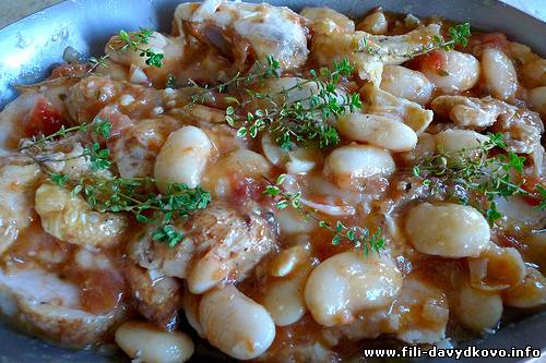 | Quote (sosed) Рассказывайте. на 6 порций: Курицу или индейку около 1 кг, банку консервированной крупной белой фасоли 600 гр, два очень больших помидора (пол кило нормальных ну или эквивалент, конечно с бычьим сердцем получится еще вкуснее чем с простыми), несколько веточек тимьяна( не только для украшения), луковицу, 2—3 зубчика чеснока,оливковое масло, соль, черный перец.