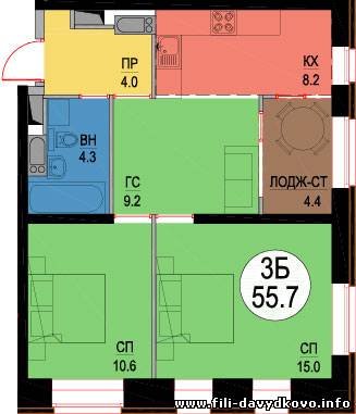 | В общем, реально хитрые у них планировки. Вот, например, трешка 55 метров (в другом корпусе). Ну, если это все пронизано светом (правда, корпус не в Африке ), то может и ничего. Необычно.