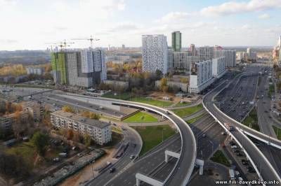 Вот на этой фотке с развязкой вперед правее пошел Краснопресненский проспект (бывш. Проспект Маршала Жукова) к МКАД (на горизонте справа лес - Сер. Бор), а налево пошла ул. Народного Ополчения в наши края. Этот корпус стоит на Народного Ополчения.
