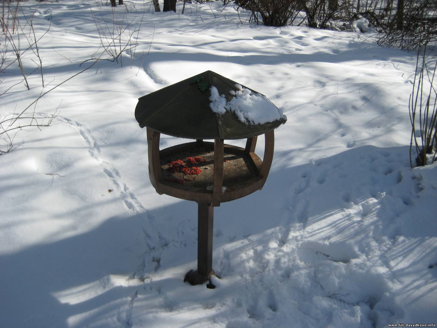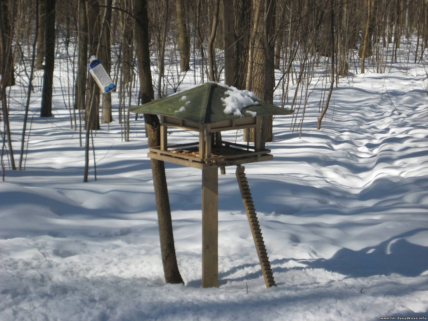 А вот кормушка большая - та, что уже давно висит....
