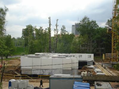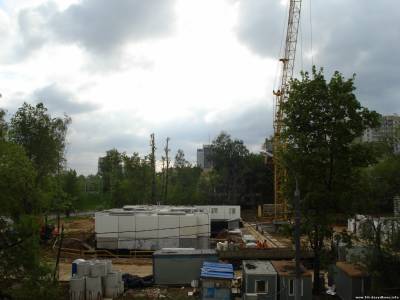 | Ну, котлован там немножечко роют. Но это экскаватор, вбок. А рабочие на том крыле, где уже есть фундамент. И крановщик все время работает. Только непонятно, что они делают