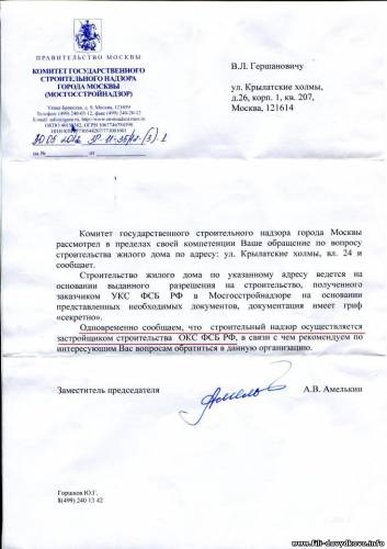 "ФСБ получило землю и строит в Крылатском жилой дом. Как это принято в Москве, во дворе других жилых домов. Ну мы же в Сингапуре живём, земли не хватает."
