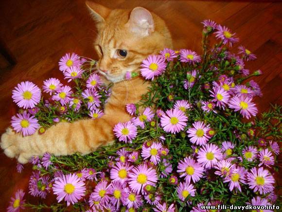 Кот в цветах? Нет, не то им нужно. Вот у меня сегодня была контртеррористическая операция на балконе... Вызволение синицы из лап Шуни... Жуть... С моей брезгливостью еще... и рядом не было того, кто мог бы помочь Так она мне простить не может. А притворялась хорошей. Все время на балкон просится, посмотреть, есть ли кого помучать. Но удалось вызволить!!!