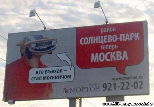 | Quote (Злюка) я уже даже примерно представляю себе площадь этого благословенного места Не, Оль, мы сами переберёмся, куда сочтём нужным. Не будем ждать выселения в новую Москву.
